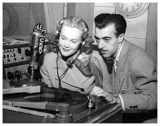 CKEY deejay Keith Sandy with studio guest Margaret Marshall, “Miss Canada 1947.”
